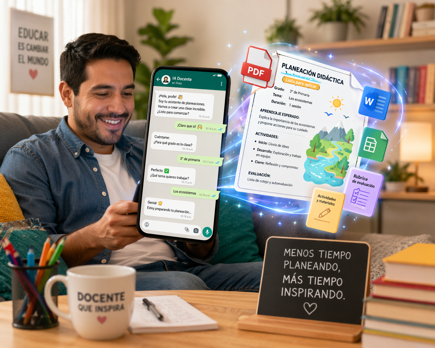 Desde WhatsApp y en solo minutos, puedes obtener una planeación contextualizada a las necesidades de tu grupo, bien diseñada y totalmente editable en Word.